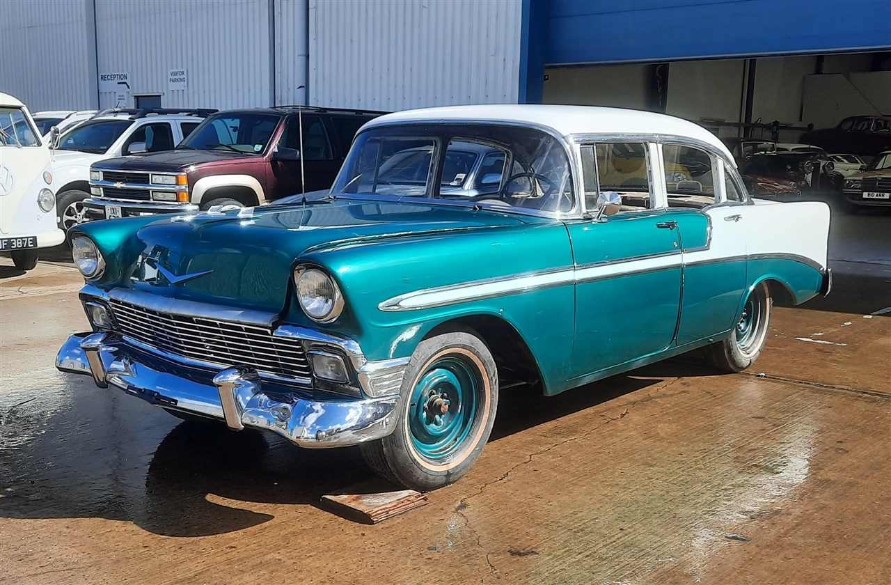 1956 Chevrolet Bel Air - SoldThis 1956 Chevrolet Bel Air V8 Sedan has been subject to some very good restoration work in the past, there is damage to the paint around the edges due to long term storage with the vendor. The underbody a...