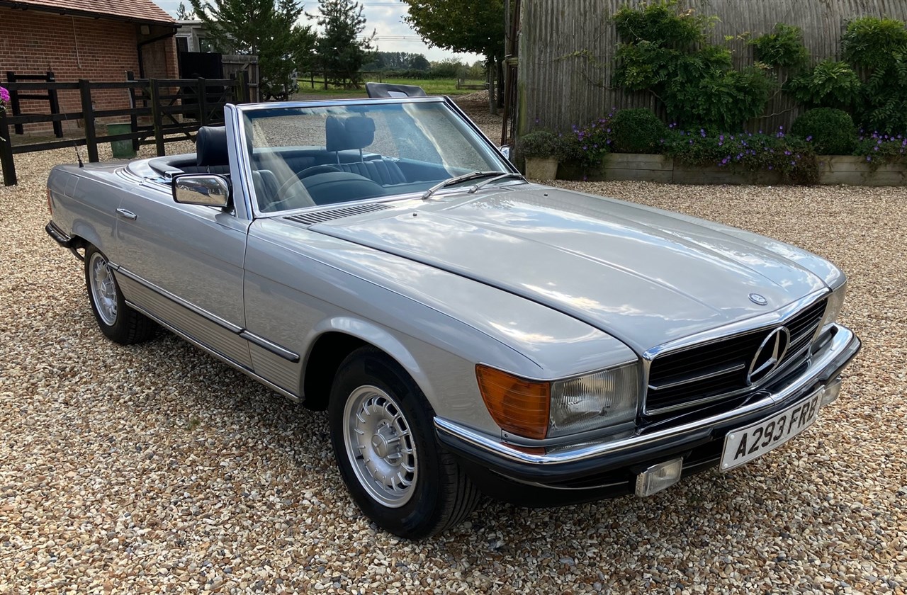 1983 Mercedes -Benz R107 280 SL - SoldA 1983 Mercedes R107 280SL convertible automatic and looks wonderful in polar silver metallic with dark blue leather interior, with dark blue hood and dark blue hardtop. The vehicle comes with the new and old l...Sold for: £13,200View Lot arrow_right
